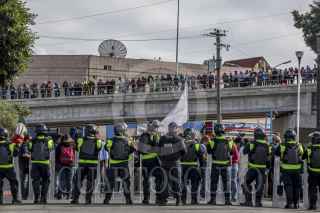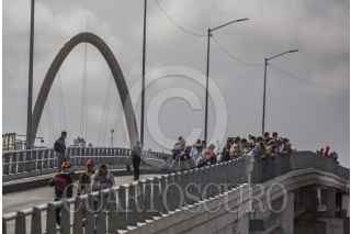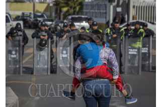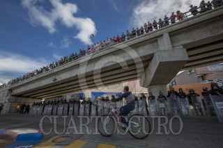 TIJUANA, BAJA CALIFORNIA, 22NOVIEMBRE2018.- Un grupo de 200 integrantes de la caravana migrante partió del albergue Benito Juárez, ubicado en la Zona Norte de la ciudad, hacia el puente fronterizo de El Chaparral con la intención de buscar dialogo con autoridades norteamericanas. La zona estuvo vigilada por un fuerte dispositivo de la Policía Federal. FOTO: OMAR MARTÍNEZ /CUARTOSCURO.COM