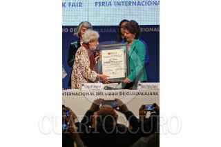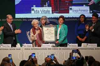 GUADALAJARA, JALISCO, 24NOVIEMBRE2018.- La poeta y ensayista Ida Vitale recibió el Premio FIL en lenguas Romances durante la inauguración de la edición 32 de la Feria Internacional del Libro en Guadalajara (FIL), a la que asistieron Olga Sánchez próxima Secretaria de Gobernación, Enrique Graue Rector de la UNAM, Porfirio Muños Ledo Presidente de la Cámara de Diputados, Jorge Aristóteles Sandoval Díaz Gobernador del Estado, Enrique Alfaro Ramírez Gobernador Electo, Miguel Ángel Navarro Rector de la Universidad de Guadalajara, Raúl Padilla López Presidente de la FIL, Marisol Schultz Directora General de la FIL, entre otras personalidades. También se llevo a cabo la inauguración del Pabellón del País Invitado de Honor Portugal, así como el recorrido por las instalaciones en el recinto de la Expo. FOTO: FERNANDO CARRANZA GARCIA /CUARTOSCURO.COM