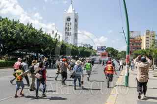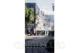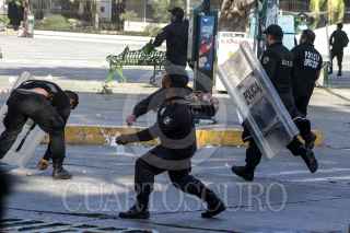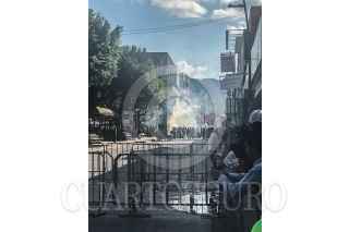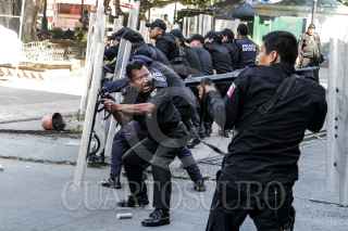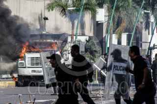 TUXTLA GUTIÉRREZ, CHIAPAS, 24NOVIEMBRE2018.- Después de que el gobernador, Manuel Velasco Coello, rindiera su sexto y último Informe de Gobierno, se suscitó a las afueras del Congreso del Estado, un enfrentamiento supuestamente entre indígenas desplazados, trabajadores de salud y normalistas de Chiapas contra policías locales. FOTO: RENÉ ARAUJO /CUARTOSCURO.COM