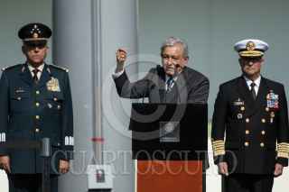 CIUDAD DE MÉXICO, 25NOVIEMBRE2018.- Andrés Manuel López Obrador, presidente electo de México, ofreció un mensaje a tropas de la Secretaría de la Defensa Nacional, Marina y Fuerza Aérea Mexicana, para solicitarles el respaldo a su próximo gobierno. FOTO: MISAEL VALTIERRA /CUARTOSCURO.COM