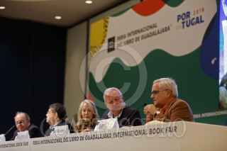 GUADALAJARA, JALISCO, 24NOVIEMBRE2018.- La Vigencia del pensamiento político de Carlos Fuentes, a 90 años de su nacimiento en el que estuvo presente Silvia Lemus viuda del escritor, esto en el marco de la edición 32 de la Feria Internacional del Libro de Guadalajara (FIL), en la que Portugal es el invitado de honor y en evento que se llevo a cabo en la Expo. FOTO: FERNANDO CARRANZA GARCIA /CUARTOSCURO.COM
