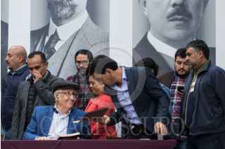 CIUDAD DE MÉXICO, 26NOVIEMBRE2018.- Enrique Calderón Alzati, director general de la Fundación Arturo Rosenblueth y Jesús Ramírez Cuevas, coordinador de Comunicación Social del gobierno electo, ofrecieron conferencia de prensa para dar a conocer los resultados de la Encuesta Nacional sobre los 10 proyectos prioritarios del próximo gobierno, entre ellos el del Tren Maya. FOTO: MISAEL VALTIERRA /CUARTOSCURO.COM