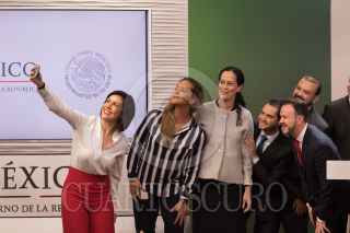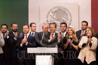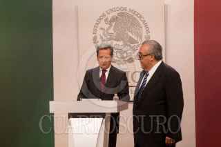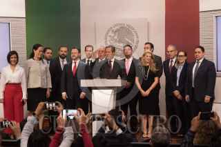 CIUDAD DE MÉXICO, 26NOVIEMBRE2018.- Trabajadores del área de Comunicación Social de la Presidencia de la República al finalizar una conferencia de prensa encabezada por Eduardo Sánchez, Vocero de la Presidencia, en la cual agradecieron al Presidente de México, Enrique Peña Nieto, su confianza en el tiempo que colaboraron durante su gestión, misma que termina el 30 de noviembre. En la imagen a la derecha Francisco Guzmán Ortiz, Jefe de la Oficina de la Presidencia. FOTO: MOISÉS PABLO /CUARTOSCURO.COM