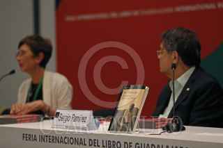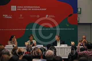 GUADALAJARA, JALISCO, 26NOVIEMBRE2018.-Pilar del Río, Sergio Ramírez y Jorge Volpi encabezaron la presentación del libro “El Cuaderno del Año del Novel” del escritor José Saramago, esto en el marco de la edición 32 de la Feria Internacional del Libro de Guadalajara (FIL), en la que Portugal es el invitado de honor y en evento que se llevo a cabo en la Expo. FOTO: FERNANDO CARRANZA GARCIA /CUARTOSCURO.COM
