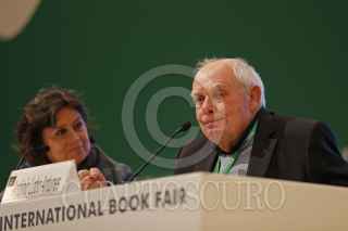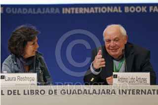 GUADALAJARA, JALISCO, 26NOVIEMBRE2018.- El escritor Portugués Antonio Lobo Antunes sostuvo una charla con la periodista Colombiana Laura Restrepo, esto en el marco de la edición 32 de la Feria Internacional del Libro de Guadalajara (FIL), en la que Portugal es el invitado de honor y en evento que se llevo a cabo en la Expo. FOTO: FERNANDO CARRANZA GARCIA /CUARTOSCURO.COM