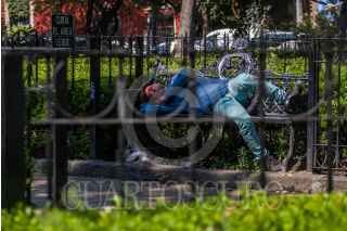 CIUDAD DE MÉXICO, 27NOVIEMBRE2018.- Un indigente toma un descanso en una banca en la colonia San Ángel, al sur de la ciudad. FOTO: ISAAC ESQUIVEL /CUARTOSCURO.COM