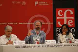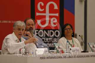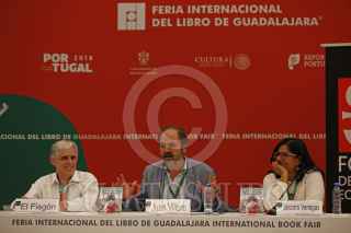 GUADALAJARA, JALISCO, 27NOVIEMBRE2018.-El escritor mexicano Juan Villoro, presento su mas reciente libro “Autopista Sanguijuela” el cual fue ilustrado por Rafael Barajas “El Fisgón”, esto en el marco de la edición 32 de la Feria Internacional del Libro de Guadalajara (FIL), en la que Portugal es el invitado de honor y en evento que se llevo a cabo en la Expo. FOTO: FERNANDO CARRANZA GARCIA /CUARTOSCURO.COM