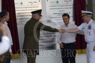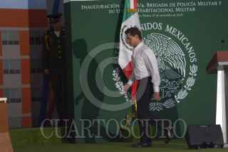 CULIACÁN, SINALOA, 27NOVIEMBRE2018.- Se inauguró las instalaciones de la 3a Brigada de la Policía Militar, en ésta ciudad. Acompañado del Gobernador de Sinaloa, Quirino Ordaz Coppel, el presidente también entregó a los elementos del Ejército la Unidad Habitacional Militar, la cual albergará a 3 mil 500 elementos de la Policía Militar y sus familias. La instalaciones están ubicadas a las afueras de ésta ciudad, en la zona conocida como El Sauz. FOTO: JUAN CARLOS CRUZ /CUARTOSCURO.
