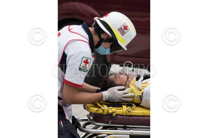 CIUDAD DE MÉXICO, 28NOVIEMBRE2018.- Socorristas de la Cruz Roja Mexicana, llevaron a cabo un simulacro de accidente vehicular en la explanada del Hospital Central de Cruz Roja Mexicana, para concientizar a la sociedad sobre la gravedad de este tipo de accidente. Se representó lo que un choque entre dos vehículos particulares. De acuerdo a los últimos reportes los accidentes viales representan más de 16 mil muertes al año. FOTO: MARIO JASSO /CUARTOSCURO.COM