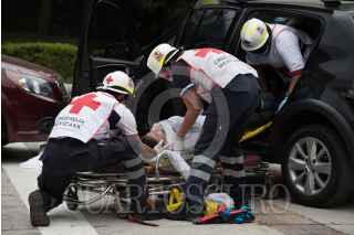 CIUDAD DE MÉXICO, 28NOVIEMBRE2018.- Socorristas de la Cruz Roja Mexicana, llevaron a cabo un simulacro de accidente vehicular en la explanada del Hospital Central de Cruz Roja Mexicana, para concientizar a la sociedad sobre la gravedad de este tipo de accidente. Se representó lo que un choque entre dos vehículos particulares. De acuerdo a los últimos reportes los accidentes viales representan más de 16 mil muertes al año. FOTO: MARIO JASSO /CUARTOSCURO.COM