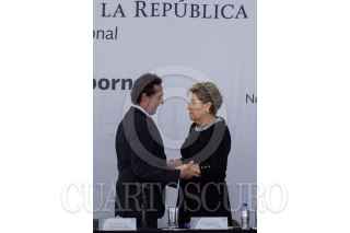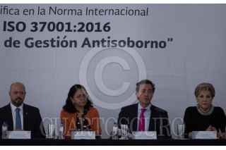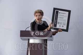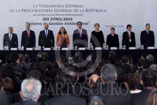 CIUDAD DE MÉXICO, 28NOVIEMBRE2018.- Alberto Elías Beltrán, subprocurador Jurídico y de Asuntos Internacionales de la Procuraduría General de la República (PGR), y Adriana Campos López, visitadora general de la procuraduría, durante la entrega de certificado de la Norma Internacional ISO 37001:2016 “Sistema de Gestión Antisoborno”. Con esta medida se busca la mejora en la perspectiva que la sociedad tiene hacia las instituciones. FOTO: GALO CAÑAS /CUARTOSCURO.COM