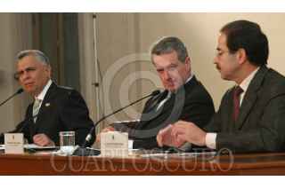México, D.F. 23 MARZO 2004.- Durante la conferencia de prensa ofrecida por Rafael Macedo de la Concha, procurador general, Santiago Creel Miranda, secretario de Gobernación y Eduardo Romero Ramos, secretario de la Función Pública, se mostraron fotográfias y estadísticas de los delincuentes aprehendidos por dichas autoridades. FOTO: Sandra Perdomo/CUARTOSCURO.COM