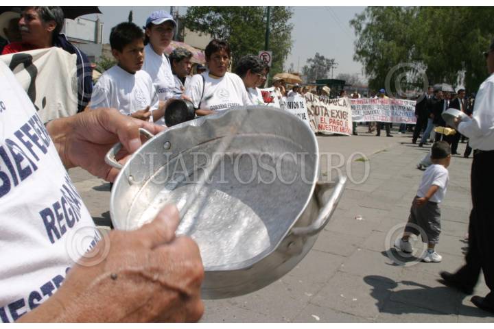 México, D. F. 23 Marzo 2004.- Un grupo de personas defraudadas por las cajas de ahorro en Jalisco, se manifestaron a las puertas de la cámara de diputados a cacelolazos, para exigir que se prosiga la investigación de su caso. FOTO: Nelly Salas/CUARTOSCURO.COM