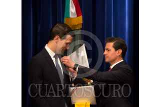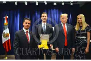 BUENOS AIRES, ARGENTINA 30NOVIEMBRE2018.- En el marco de su participación en la Cumbre de Líderes del G20, el Presidente Enrique Peña Nieto impuso hoy la Orden Mexicana del Águila Azteca a Jared Kushner, Asesor Senior del Presidente de los Estados Unidos de América, como un reconocimiento a su extraordinaria contribución a la relación bilateral entre México y Estados Unidos, y en especial por su papel en la negociación del nuevo Tratado Comercial entre México, Estados Unidos y Canadá (TMEC). Kushner estuvo acompañado en la ceremonia por el Presidente de los Estados Unidos, Donald Trump, y su esposa Ivanka Trump. FOTO: PRESIDENCIA /CUARTOSCURO.COM
