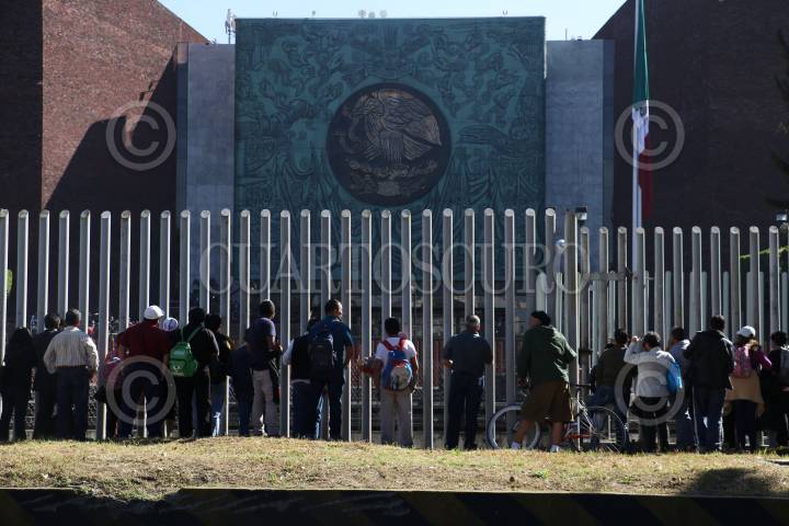 CIUDAD DE MÉXICO,01DICIEMBRE2018.- Un grupo de personas se dieron cita al exterior de Palacio Legislativo de San Lázaro, sobre la avenida Congreso, para poder observar la llegada de Andrés Manuel López Obrador, a su toma de protesta como presidente de la República. En la imagen, una familia, observa el discurso del presidente, a través de un celular. FOTO: MARIO JASSO /CUARTOSCURO.COM