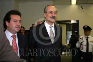 México, D.F. 04 MAYO 2004.- Guillermo Prieto, presidente de la Bolsa Mexicana de Valores y Francisco Gil Díaz secretario de Hacienda antes de a la ceremonia simbólica del campanazo de iincio de sesión. FOTO: Sandra Perdomo/CUARTOSCURO.COM