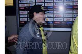 SAN LUIS POTOSI, SAN LUIS POTOSI, 02DICIEMBRE2018.- Diego Armando Maradona, director técnico de Dorados de Sinaloa, a su arribo a las inmediaciones del estado Alfonso Lastras, para disputar la final del Apertura 2018 de Liga de Ascenso ante el Atlético San Luis. FOTO: GALO CAÑAS /CUARTOSCURO.COM