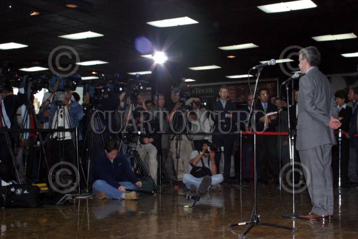 México, D.F. 04 Mayo 2004.- Conferencia de prensa, del secretario de Gobernación Santiago Creel, dos días después de dar el aviso de la ruptura diplomática con Cuba. Evento realizado en el Museo de Antropología. FOTO: Sandra Perdomo/CUARTOSCURO.COM