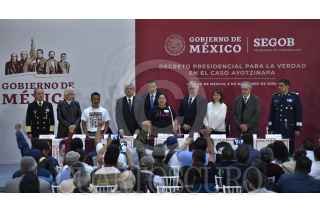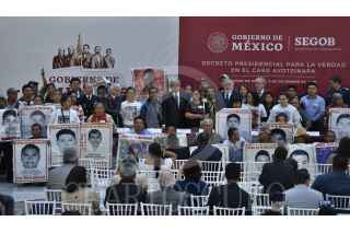 CIUDAD DE MÉXICO, 03DICIEMBRE2018.- Andrés Manuel Lopez Obrador, presidente de México, acompañado de los padres de los 43 normalistas desaparecidos de la normal Raúl Isidro Burgos, firmó el decreto presidencial para la verdad en el caso Ayotzinapa. FOTO: SAÚL LÓPEZ /CUARTOSCURO.COM