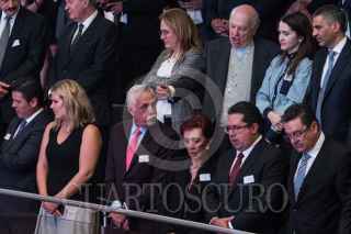 CIUDAD DE MÉXICO, 04DICIEMBRE2018.- El empresario Rafael Herrerías quien asistió como invitado a la sesión del pleno del Senado de la República, es distraído con un "jalón" por parte de Onésimo Cepeda, ex obispo de Ecatepéc y quien también asistió como invitado. FOTO: MISAEL VALTIERRA /CUARTOSCURO.COM