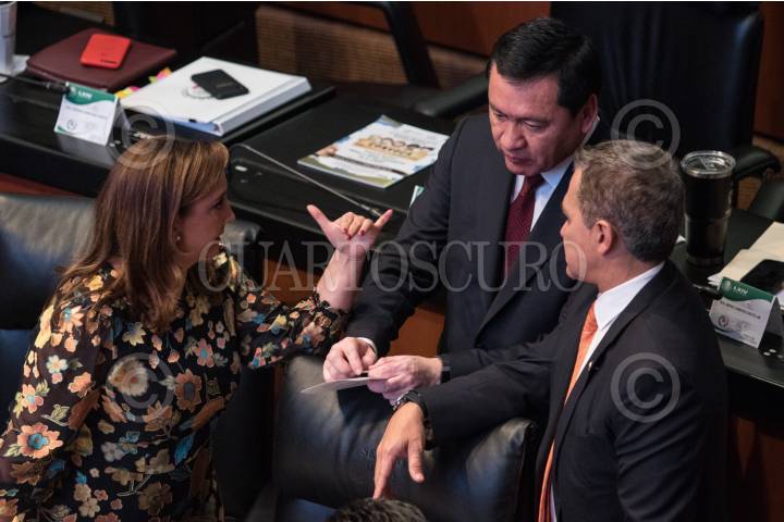CIUDAD DE MÉXICO, 04DICIEMBRE2018.- El senador de Morena, Napoleón Gómez Urrutia y Carlos Aceves del Olmo, senador del PRI, conversan durante la sesión del pleno del Senado de la República. FOTO: MISAEL VALTIERRA /CUARTOSCURO.COM