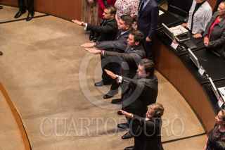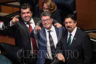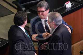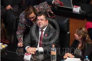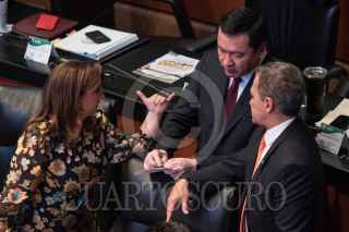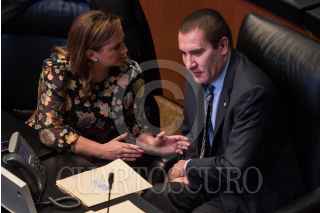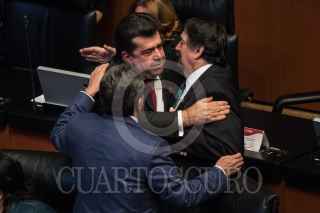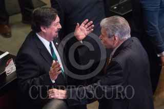 CIUDAD DE MÉXICO, 04DICIEMBRE2018.- El senador de Morena, Napoleón Gómez Urrutia y Carlos Aceves del Olmo, senador del PRI, conversan durante la sesión del pleno del Senado de la República. FOTO: MISAEL VALTIERRA /CUARTOSCURO.COM