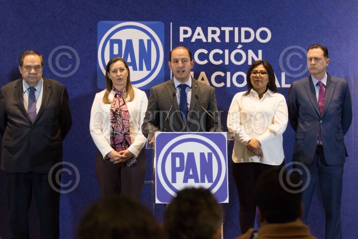 CIUDAD DE MÉXICO, 04DICIEMBRE2018.- Martha Érika Alonso, candidata por el PAN a al gubernatura de Puebla, acompañada de Marko Cortés, dirigente nacional del PAN, ofreció conferencia de prensa para compartir su postura en contra del comunicado que hizo un magistrado del Tribunal Electoral del Poder Judicial de la Federación (TEPJF) en el que solicita la anuación de la elección de Puebla. FOTO: MARIO JASSO / CUARTOSCURO.COM