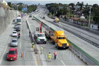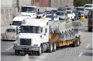 CUERNAVACA, MORELOS, 05DICIEMBRE2018.- Continua el retiro de las divisiones de concreto que separan los carriles de alta velocidad de los de baja del Paso Exprés. Cuarenta trabajadores, con ocho plataformas para traslado de las barras y dos grúas realizan las labores que pretenden terminen en 15 dias. FOTO: MARGARITO PÉREZ RETANA /CUARTOSCURO.COM