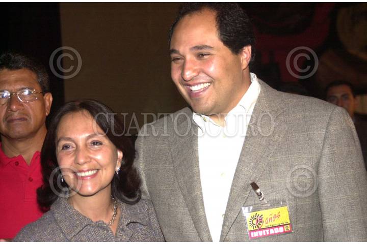México D.F 05 Mayo 2004.- Andrés Manuel López Obrador jefe de gobierno del D.F se despide de Ricardo Monreal gobernador de Zacatecas al término de la ceremonia conmemorativa del 15 aniversario del partido de la Revolución Democrática. FOTO: Eunice Adorno/CUARTOSCURO.COM
