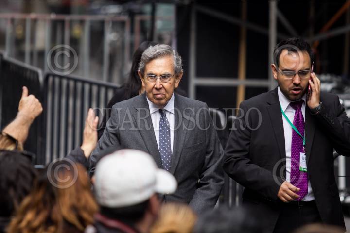 CIUDAD DE MÉXICO, 05DICIEMBRE2018.- Miguel Torruco, secretario de Turismo, conversa con José Ramón López Beltrán, hijo del presidente Andrés Manuel López Obrador, en las escalinatas del Congreso Local de la Ciudad de México, en donde Claudia Sheinbaum tomó protesta como Jefa de Gobierno ante el pleno legislativo. FOTO: GALO CAÑAS /CUARTOSCURO.COM