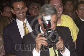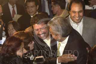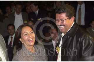 México D.F 05 Mayo 2004.- Andrés Manuel López Obrador jefe de gobierno del D.F se despide de Ricardo Monreal gobernador de Zacatecas al término de la ceremonia conmemorativa del 15 aniversario del partido de la Revolución Democrática. FOTO: Eunice Adorno/CUARTOSCURO.COM