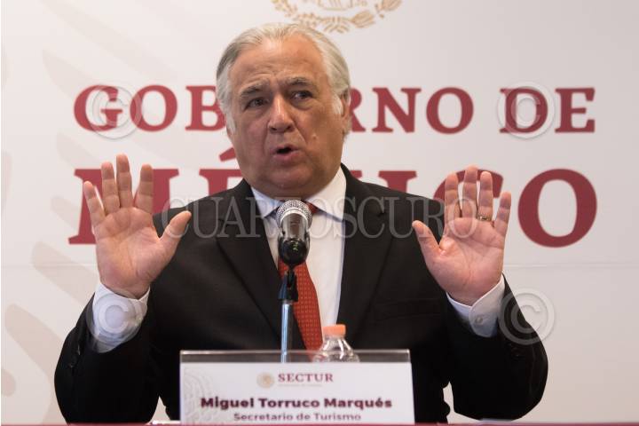 CIUDAD DE MÉXICO, 06DICIEMBRE2018.- Miguel Torruco Marqués, secretario de Turismo federal, durante la conferencia de prensa en la cual se habló sobre los proyectos de esta secretaría en materia de turismo nacional e internacional. Torruco señaló como una farsa que México ocupe el sexto lugar a nivel mundial en captación de turismo internacional, un dato muy pregonado por su antecesor Enrique de la Madrid Cordero, que a lo mucho estamos en el lugar 16, también reiteró que la Secretaría de Turismo se trasladará a Chetumal, Quintana Roo, y defendió el proyecto aeroportuario de Santa Lucía, quien aseguró será el encargado de recibir los vuelos internacionales, mientras que el actual AICM atenderá la demanda local, complementados por el Aeropuerto Internacional de Toluca. FOTO: MOISÉS PABLO /CUARTOSCURO.COM