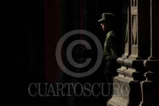 CIUDAD DE MÉXICO, 06DICIEMBRE2018.- Un integrante de las Fuerzas Armadas, resguarda el acceso central de Palacio Nacional, sitio donde despacha el presidente de México, Andrés Manuel López Obrador. FOTO: MISAEL VALTIERRA /CUARTOSCURO.COM