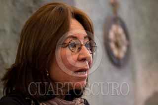 CIUDAD DE MÉXICO, 07DICIEMBRE2018.- Ana Enamorado, madre integrante de la Caravana de Madres Migrantes Mesoamericanas, movimiento que busca a migrantes desaparecidos, durante una entrevista posterior a la conferencia de prensa en el Centro Nacional de Comunicación Social (CENCOS) donde emitió un comunicado a las autoridades migratorias mexicanas para que rechacen las políticas migratorias propuestas por el presidente estadounidense Donald Trump. FOTO: GALO CAÑAS /CUARTOSCURO.COM