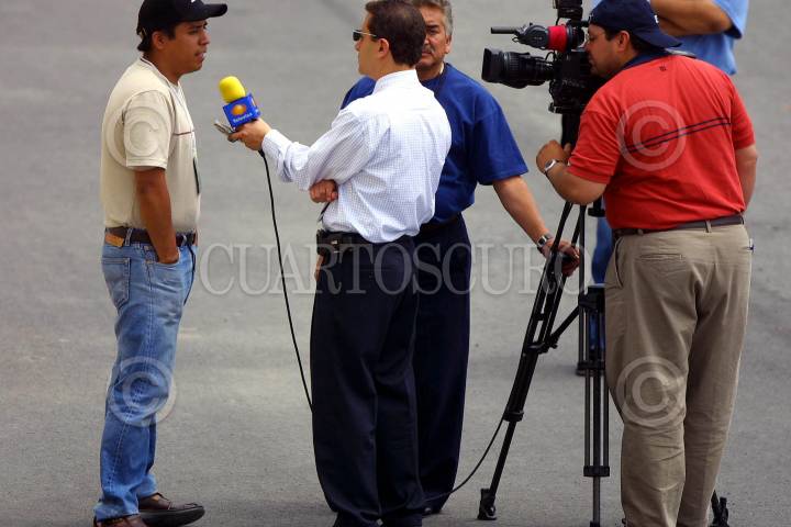 Monterrey, Nuevo León. 06MAY2004.- Diversos estudiantes plasmaron en estos cuadros, su punto de vista acerca de los medios de comunicacion en el país, dentro del marco de "Espacio 04" FOTO: Jorge López/CUARTOSCURO.COM