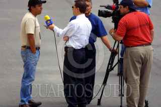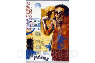 Monterrey, Nuevo León. 06MAY2004.- Diversos estudiantes plasmaron en estos cuadros, su punto de vista acerca de los medios de comunicacion en el país, dentro del marco de "Espacio 04" FOTO: Jorge López/CUARTOSCURO.COM
