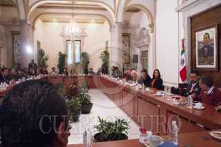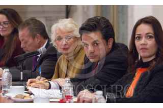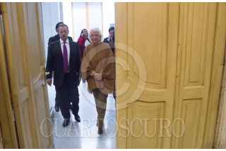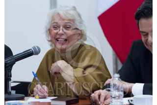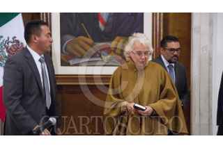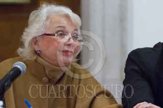 CIUDAD DE MÉXICO, 12DICIEMBRE2018.- Olga Sánchez Cordero, titular de Gobernación acompañada del encargado de Comunicación Social Hector Gandini, platico con representantes de medios de comunicación esta tarde en el salón Juárez de la Segob. FOTO: VICTORIA VALTIERRA / CUARTOSCURO.COM