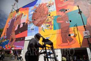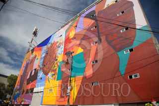 CIUDAD DE MÉXICO, 13DICIEMBRE2018.-Se presentó "Un Mural para la Merced" en la calle Juan Cuamitzin número 2 del emblemático Barrio ubicado en la zona centro de la ciudad, proyecto colectivo y comunitario encabezado por la fundación ORB A.C., locatarios, el Centro Cultural Casa Talavera, entre otros; realizaron un mural de 870 metros cuadrados con pintura vinílica para impulsar el arte como objeto de cambio positivo en la sociedad y que todo el que camine por ahí pueda identificarse con tantos años de cultura e historia ya que la Merced uno de los mercados y barrios más antiguos y emblemáticos. FOTO: ILSE HUESCA /CUARTOSCURO.COM