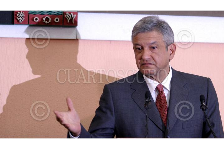México, D. F. 07 Mayo 2004.- El jefe de gobierno del Distrito Federal, Andrés Manuel López Obrador, firma unas fotos que un trabajar de la planta de Bombeo de Aguas Combinadasle pidió que le autografiara. FOTO: Nelly Salas/CUARTOSCURO.COM