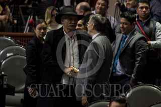 CIUDAD DE MÉXICO, 13DICIEMBRE2018.- El doctor Juan Manuel Mireles Valverde, exlíder de las Autodefensas en Michoacán, acudió de visita a la sesión ordinaria en la Cámara de Diputados invitado por el grupo parlamentario del PRD. En la imagen, Pablo Gómez, diputado morenista, y el doctor Mireles. FOTO: GALO CAÑAS /CUARTOSCURO.COM