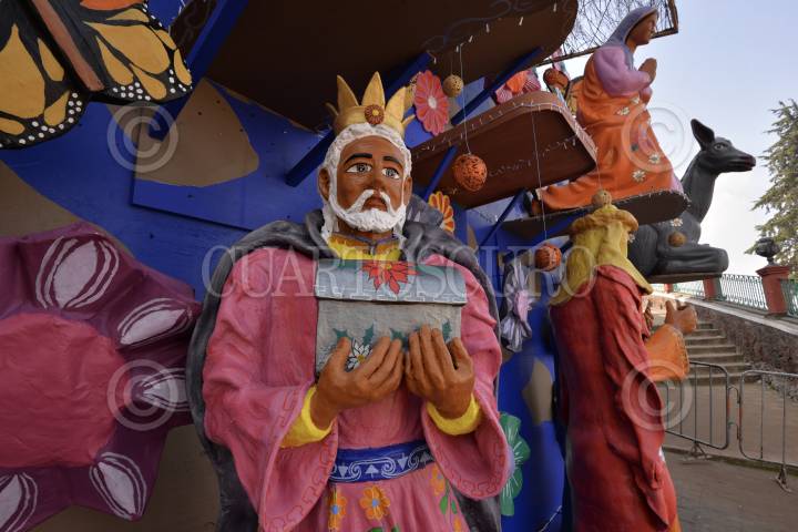 METEPEC, ESTADO DE MÉXICO, 13DICIEMBRE2018.- Como parte de las actividades del Festival Navideño en Metepec fue instalado un Nacimiento Monumental en las escaleras de la Iglesia de El Calvario, que consta de 110 piezas hechas por artesanos de este municipio, de barro, cartonería y vidrio. FOTO: ARTEMIO GUERRA BAZ /CUARTOSCURO.COM