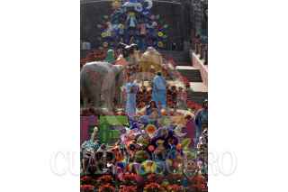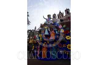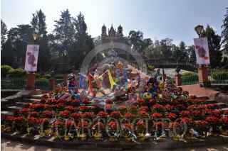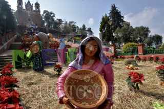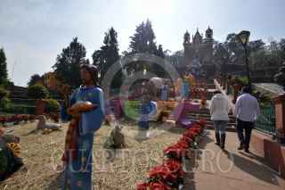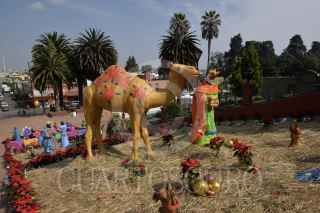 METEPEC, ESTADO DE MÉXICO, 13DICIEMBRE2018.- Como parte de las actividades del Festival Navideño en Metepec fue instalado un Nacimiento Monumental en las escaleras de la Iglesia de El Calvario, que consta de 110 piezas hechas por artesanos de este municipio, de barro, cartonería y vidrio. FOTO: ARTEMIO GUERRA BAZ /CUARTOSCURO.COM