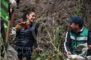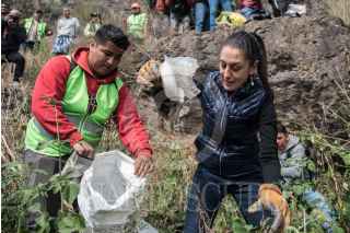 CIUDAD DE MÉXICO, 15DICIEMBRE2018.- Claudia Sheinbaum, jefa de Gobierno de la capital, participó en la segunda jornada de tequio en tiraderos de la Sierra de Guadalupe, ubicada en la colonia Chalma. FOTO: MARIO JASSO /CUARTOSCURO.COM