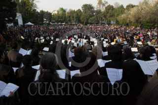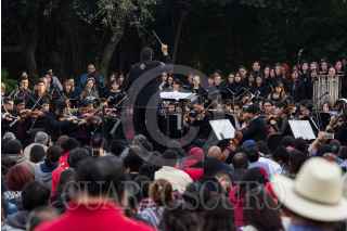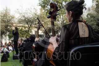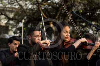 CIUDAD DE MÉXICO, 16DICIEMBRE2018.- La orquesta de la Escuela Carlos Chávez realizó una presentación de Carmina Burana en las inmediaciones del Centro Cultural “Los Pinos”. Ante decenas de personas, los músicos tocaron tres momentos de dicha obra musical. FOTO: GALO CAÑAS /CUARTOSCURO.COM