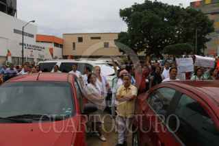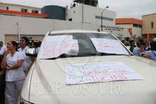 VILLAHERMOSA, TABASCO, 18DICIEMBRE2018.- Desde las 12:40 horas aproximadamente se encuentra retenida dentro de su camioneta Martha Lilia López Aguilera. La esposa del gobernador Arturo Núñez Jiménez, fue alcanzada por trabajadores del hospital del Niño cuando intentaba abordar la unidad pero una muchedumbre de inconformistas del sector salud formaron una barrera humana para impedirle y así presionar al gobierno para que les paguen sus quincenas, aguinaldos y carencias en hospital publico. FOTO: EDGAR JASSO /CUARTOSCURO.COM