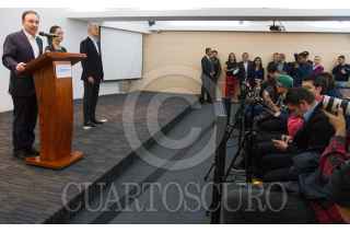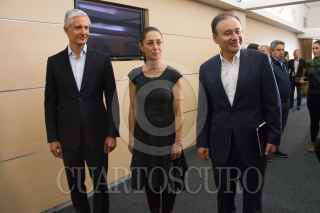 CIUDAD DE MÉXICO, 18DICIEMBRE2018.- Alfonso Durazo, Secretario de Seguridad y Protección Ciudadana, Claudia Sheinbaum, jefa del Gobierno de la Ciudad y el Gobernador del Estado de México, Alfredo del Mazo, se reunieron esta tarde para informar sobre las acciones conjuntas para abatir la delincuencia en ambas entidades. FOTO: VICTORIA VALTIERRA /CUARTOSCURO.COM