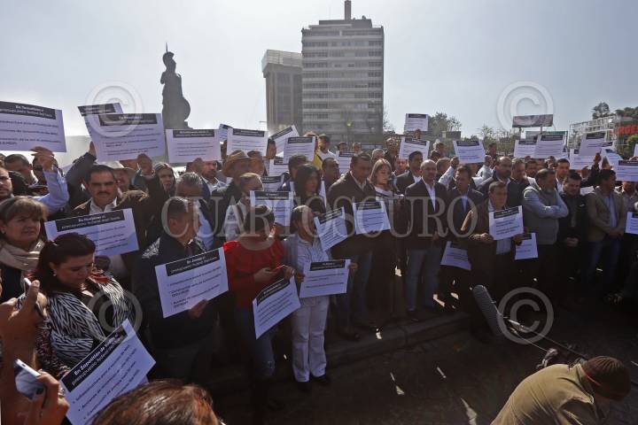 GUADALAJARA, JALISCO, 19DICIEMBRE2018.- Alrededor de 110 Presidentes Municipales del estado encabezados por los alcaldes del Área Metropolitana, se manifestaron este medio día en las inmediaciones de la Glorieta Minerva para exigir al Gobierno Federal reflexione en cuanto a la distribución del Presupuesto 2019 a las municipalidades de la entidad. FOTO: FERNANDO CARRANZA GARCIA / CUARTOSCURO.COM