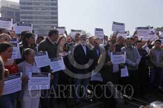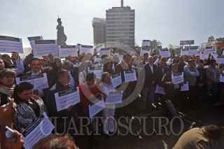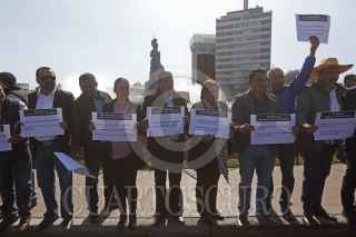 GUADALAJARA, JALISCO, 19DICIEMBRE2018.- Alrededor de 110 Presidentes Municipales del estado encabezados por los alcaldes del Área Metropolitana, se manifestaron este medio día en las inmediaciones de la Glorieta Minerva para exigir al Gobierno Federal reflexione en cuanto a la distribución del Presupuesto 2019 a las municipalidades de la entidad. FOTO: FERNANDO CARRANZA GARCIA / CUARTOSCURO.COM