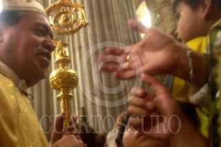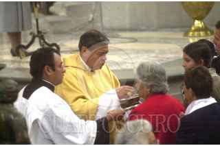 MEXDF 09 MAYO 2004. Norberto Rivera, obispo de México se despide de unos feligreses al término de la misa dominical en la catedral metropolitana. FOTO: Eunice Adorno/CUARTOSCURO.COM