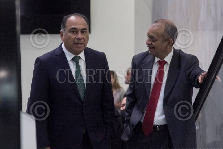CIUDAD DE MÉXICO, 20DICIEMBRE2018.- Quirino Ordaz Coppel, gobernador de Sinaloa, Héctor Astudillo Flores, gobernador de Guerrero, y Javier Corral, gobernador de Chihuahua, al termino de la reunión de la Conferencia Nacional de Gobernadores (CONAG), en el World Trade Center (WTC). FOTO: GALO CAÑAS /CUARTOSCURO.COM
